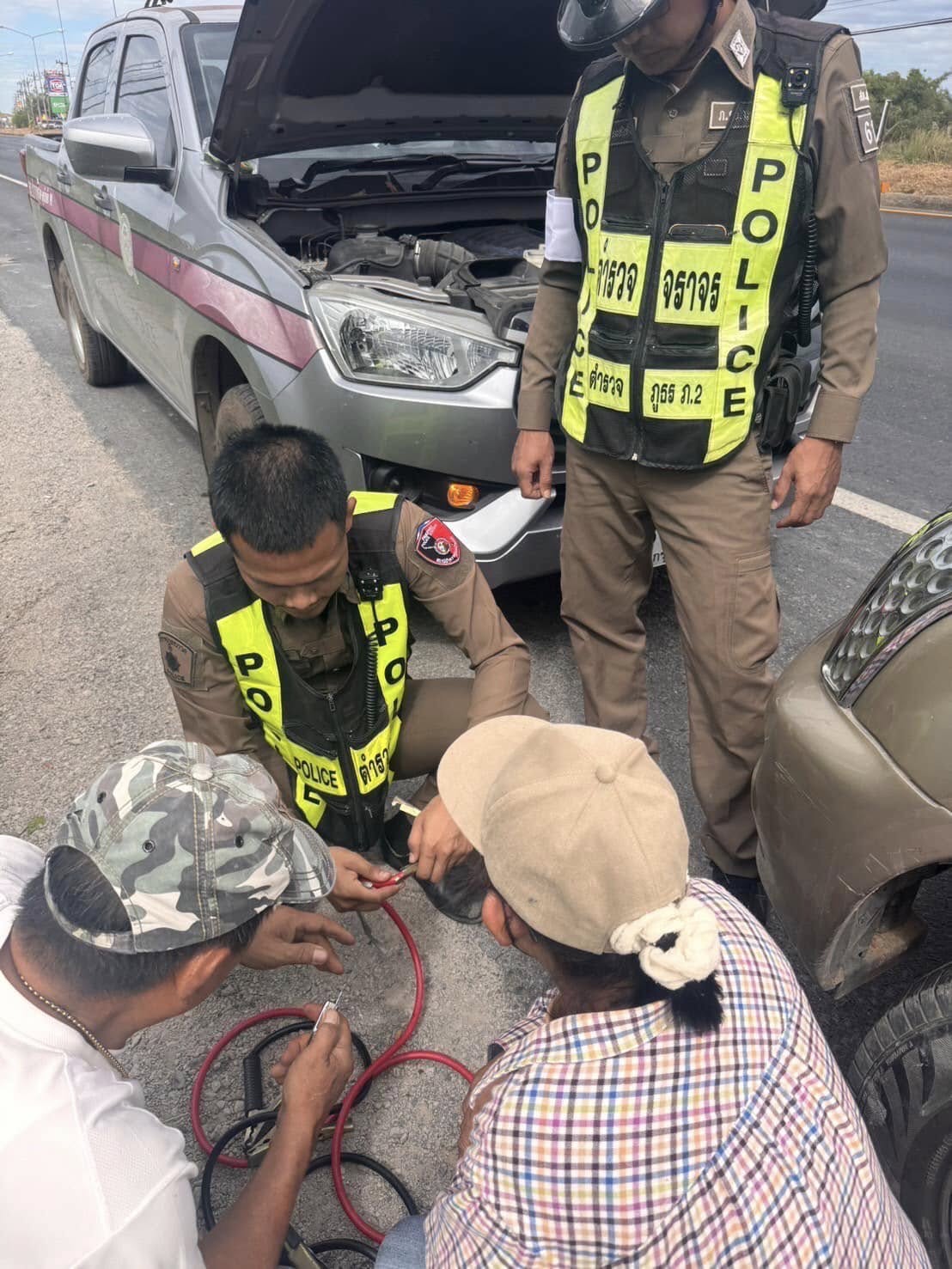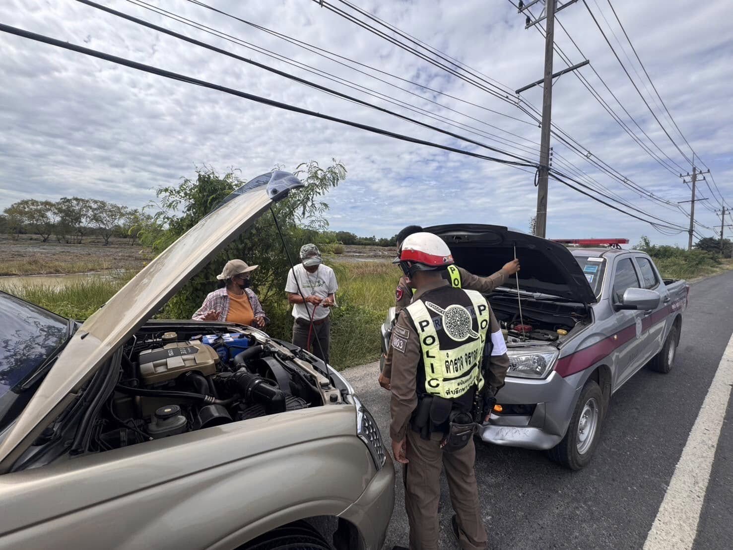 -เจ้าหน้าที่ตำรวจให้การช่วยเหลือพ่วงแบตเตอรี่แต่ไม่ติด สาเหตุน่าจะเป็นที่ไดสตาร์ทจึงได้ประสานช่างจากอู่ มาดำเนินการซ่อมแซม เป็นที่เรียบร้อยและได้อวยพรให้เดินทางถึงที่หมายโดยสวัสดิภาพ