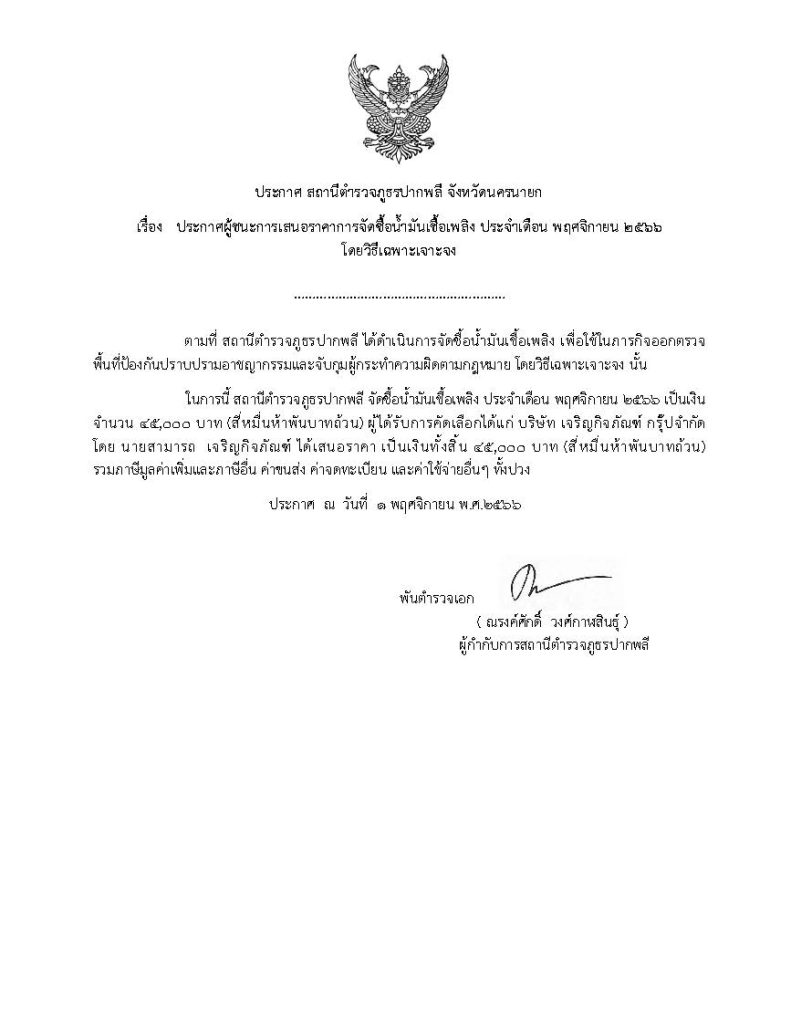 ประกาศจัดซื้อจัดจ้าง ประจำเดือน พฤศจิกายน พ.ศ.2566 ประจำปีงบประมาณ พ.ศ. 2567